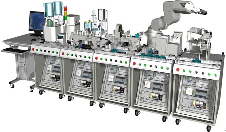 機電一體化技術實訓設備是指機械技術、電工電子技術、微電子技術、信息技術、傳感器技術、接口技術、信號變換技術等多種技術進行有機地結合,并綜合應用到實際中去的技能實訓綜合技術,現代化的自動生產設備幾乎可以說都是機電一體化的設備。自動化生產線實訓考核系統,可以培養和提高學生專業綜合能力,是一種重要的實訓設備。自動化生產線實訓系統、基于PLC技術的自動化生產線實訓考核系統,可以培養和提高學生專業綜合能力,是一種重要的實訓設備。自動化生產線實訓系統整體包括自動供料、檢測傳輸、檢測加工、自動裝配、自動分揀等工序,很好的將機械技術、微電子技術、電工電子技術、傳感測試技術、接口技術、信息變換技術、網.絡通信技術等多種技術有機地結合。該系統中自動分揀站的設計過程,包括系統硬件設計、PLC控制設計和程序設計方法,F代化的自動生產設備的最大特點是它的綜合性和系統性,在這里,機械技術、微電子技術、電工電子技術、傳感測試技術、接口技術、信息變換技術、網絡通信技術等多種技術有機地結合,并綜合應用到生產設備中:而系統性指的是,生產線的傳感檢測、傳輸與處理、控制、執行與驅動等機構在微處理單元的控制下協調有序地工作,有機地融合在一起。可編程序控制器(PLC)以其高抗干擾能力、高可靠性、高性能價格比且編程簡單而廣泛地應用在現代化的自動生產設備中,擔負著生產線的大腦一微 處理單元的角色。因此,培養掌握機電一體化技術,掌握PLC技術及PLC網絡技術的技術人材是當務之急。而一套基于PLC技術的自動化生產線實訓考核設備可以模擬一個與實際生產情況+分接近的控制過程,使學習者得到一個非常接近于實際的教學設備環境,從而縮短了理論教學與實際應用之間的距離。自動分揀站需完成對上一單元送來的已加工、裝配的工件進行分揀。使不同顏色的工件從不同的料槽分流的功能。當輸送站送來工件放到傳送帶上并為入料口光電傳感器檢測到時,即啟動變頻器,工件開始送入分揀區進行分揀。上海碩博弘揚大國工匠精神, 發展職業教育,應用教學設備,為企業培養高技能人才,而專業生產:光機電一體化(自動生產線)實訓裝置、灌裝自動化生產線實訓裝置、工業自動生產線實訓裝置 、工業控制模擬實訓裝置 、機電一體化組合實訓平臺 、機電一體化綜合實訓考核裝置、自動化生產安裝與調試實訓裝置 、光機電一體化高速分揀實訓系統 、典型機電設備安裝與控制實訓裝置、模塊式柔性自動環形生產線實驗系統(帶機器人工程型)、立體停車庫實物教學實驗裝置、機電一體化柔性生產線加工實訓系統(5站)、網絡型模塊式柔性自動化生產線實驗系統、模塊式柔性自動環形生產線實驗系統(工程型)、柔性生產制造實驗系統(工程型)、現代物流倉儲自動化實驗系統、運動實訓裝置、循環搬運自動控制實訓裝置、平面雙軸運行控制實訓裝置、工業機械手實訓裝置、物料分揀實訓裝置、機械手實訓裝置 、立體倉庫實訓裝置、十字路口交通燈實訓系統、機電液氣一體化綜合實訓裝置、光機電一體化高速分揀實訓系統、步進伺服控制綜合實訓平臺、光機電氣一體化控制實訓系統、 光機電一體化綜合實訓考核裝置、光機電一體化實訓考核裝置、光機電一體化實訓考核裝置、光機電氣一體化控制實訓系統、自動生產線拆裝與調試實訓裝置、柔性自動化生產線實訓系統。