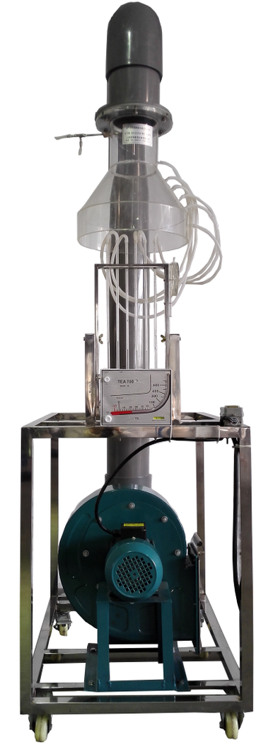 局部抽吸排風(fēng)罩、畢托管、壓差計、低噪音多翼風(fēng)機(jī)、管路、斜管微壓計、調(diào)節(jié)風(fēng)門、高度尺、不銹鋼實(shí)驗臺架。