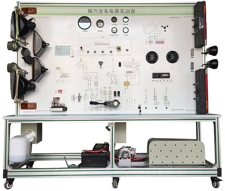 該設(shè)備采用泰安TA4360柴油機整車電器實物為基礎(chǔ),充分展示汽車儀表系統(tǒng)、燈光系統(tǒng)、雨刮系統(tǒng)、喇叭系統(tǒng)、發(fā)動機電器系統(tǒng)、起動系統(tǒng)和充電系統(tǒng)等汽車電器各系統(tǒng)的組成結(jié)構(gòu)和工作過程。