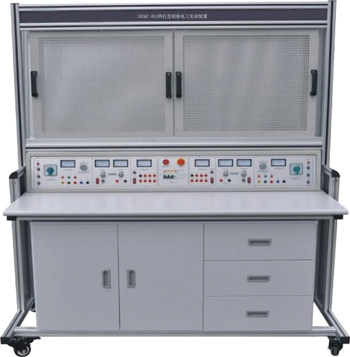 初級維修電工實訓室設備可作為維修電工考核裝置,有可在網孔板上進行照明器件及線路的安裝,電工儀表測量線路的安裝、電工儀表測量線路的安裝、配電盤的裝配訓練,電動機的控制線路安裝訓練。